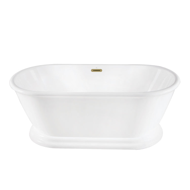 Kingston Heirloom VTDE663124C427 - Aqua Eden 66-Inch Acrylic Oval Double Ended Pedestal Tub with Drain (No Faucet Drillings), Glossy White/Brushed Brass