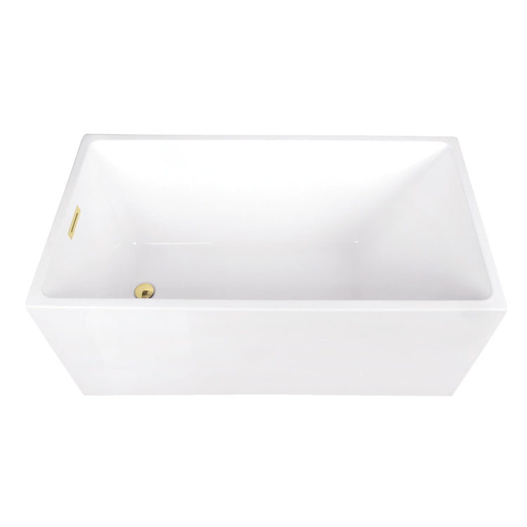 Kingston Sona VTSQ512823C412 - Aqua Eden 51-Inch Acrylic Rectangular Double Ended Freestanding Tub with Drain, Glossy White/Polished Brass
