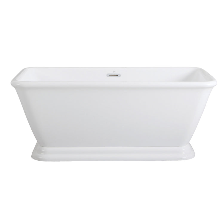 Incorporate the regal beauty of a Kingston Brass pedestal tub for years and years of luxury baths suitable for royalty. Pedestal tubs are generally categorized as the contemporary descendant of the classic clawfoot tub. However, unlike the clawfoot tub, pedestal tubs rely on a solid base ring bordering the bottom perimeter to support and raise it off the floor, giving it a one-of-a-kind personality. The Aqua Eden 66" Acrylic Rectangular Pedestal Bathtub will wholly beautify your home for years to come thanks to its durable and easily repairable acrylic construction. This bathtub is finished inside and out in a brilliant, high-gloss white that ensures crisp aesthetics and easy care now and well in the future.