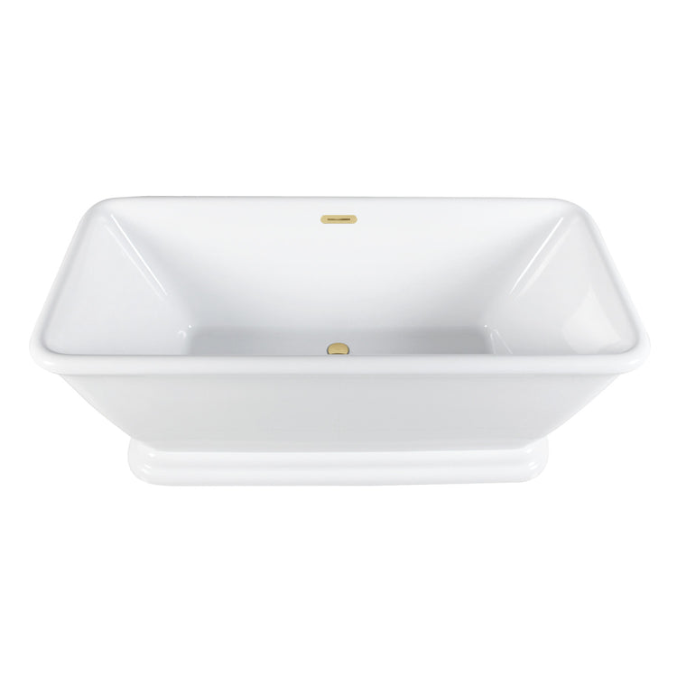 Kingston Heirloom VTSQ663124C422 - Aqua Eden 66-Inch Acrylic Oval Rectangular Double Ended Pedestal Tub with Drain (No Faucet Drillings), Glossy White/Polished Brass