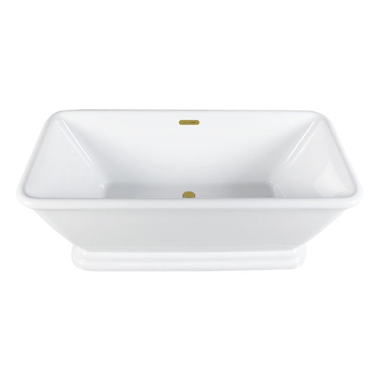 Kingston Heirloom VTSQ663124C427 - Aqua Eden 66-Inch Acrylic Oval Rectangular Double Ended Pedestal Tub with Drain (No Faucet Drillings), Glossy White/Brushed Brass