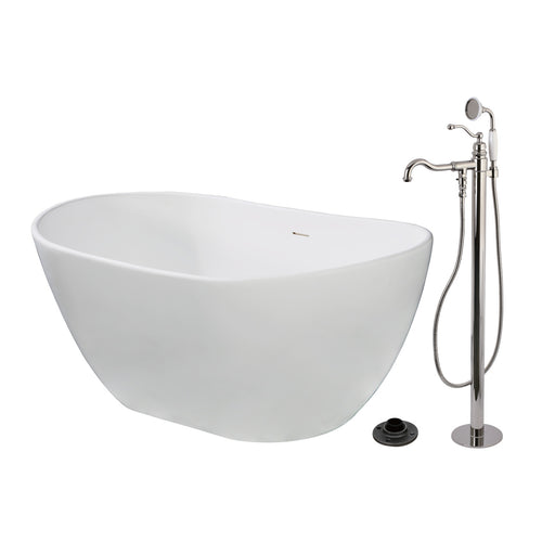 Original price $8,589.95Original price $8,589.95 - Original price $8,589.95Original price $8,589.95Current price $6,442.46$6,442.46 - $6,442.46Current price $6,442.46| /Kingston Tulare KRTSS5130136AL - Arcticstone 51-Inch Solid Surface Oval Single Slipper Freestanding Tub with Faucet Combo and Drain, Polished Nickel
