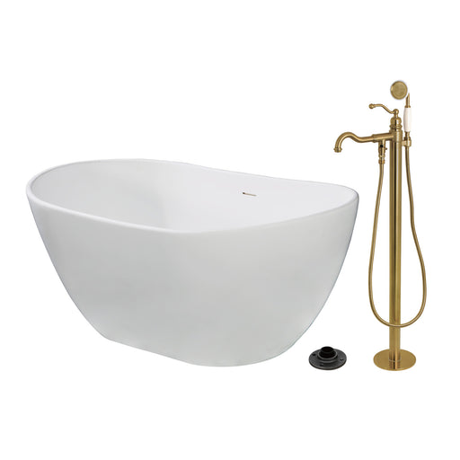 Original price $8,589.95Original price $8,589.95 - Original price $8,589.95Original price $8,589.95Current price $6,442.46$6,442.46 - $6,442.46Current price $6,442.46| /Kingston Tulare KRTSS5130132AL - Arcticstone 51-Inch Solid Surface Oval Single Slipper Freestanding Tub with Faucet Combo and Drain, Polished Brass