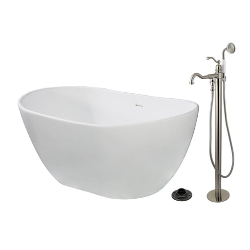 Original price $8,569.95Original price $8,569.95 - Original price $8,569.95Original price $8,569.95Current price $6,427.46$6,427.46 - $6,427.46Current price $6,427.46| /Kingston Tulare KRTSS5130138AL - Arcticstone 51-Inch Solid Surface Oval Single Slipper Freestanding Tub with Faucet Combo and Drain, Brushed Nickel