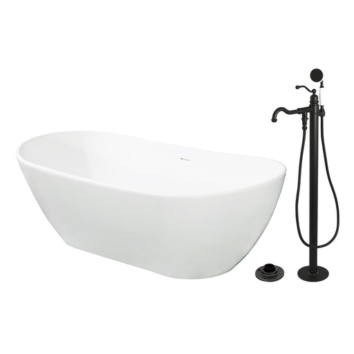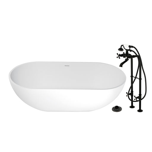 Kingston BrassKingston Tulare KRTRS7035266K0 - Arcticstone 70-Inch Solid Surface Oval Double Ended Freestanding Tub with Faucet Combo and Drain, Matte Black T...
