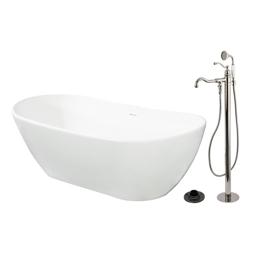 Kingston BrassKingston Tulare KRTRS5732136AL - Arcticstone 57-Inch Solid Surface Oval Double Slipper Freestanding Tub with Faucet Combo and Drain, Polished Nick...
