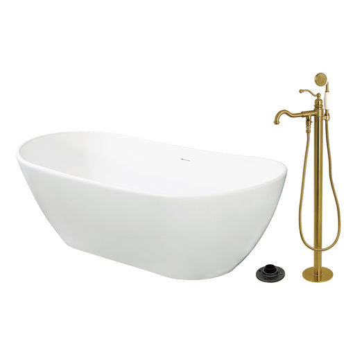 Kingston BrassKingston Tulare KRTRS5732137AL - Arcticstone 57-Inch Solid Surface Oval Double Slipper Freestanding Tub with Faucet Combo and Drain, Brushed Brass...