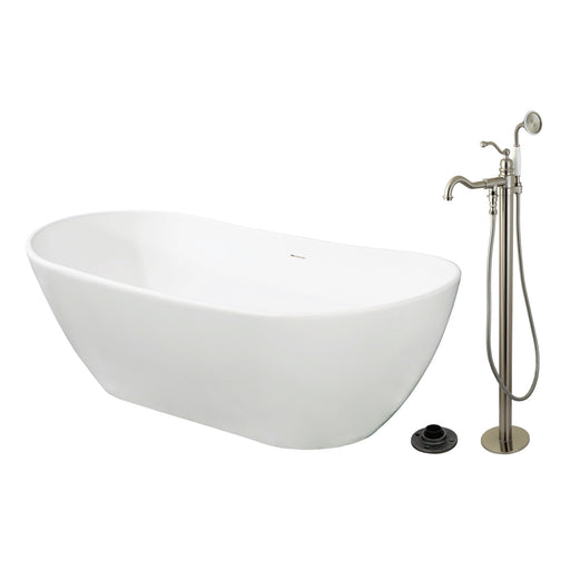Kingston BrassKingston Tulare KRTRS7232138AL - Arcticstone 72-Inch Solid Surface Oval Double Ended Freestanding Tub with Faucet Combo and Drain, Brushed Nickel ...