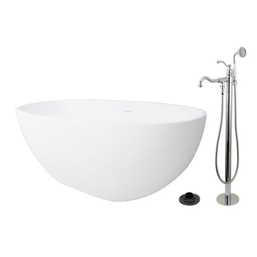 Kingston BrassKingston Tulare KRTRS6531131AL - Arcticstone 65-Inch Solid Surface Oval Double Ended Freestanding Tub with Faucet Combo and Drain, Polished Chrome...