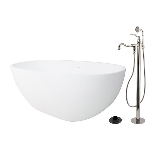 Kingston BrassKingston Tulare KRTRS6531136AL - Arcticstone 65-Inch Solid Surface Oval Double Ended Freestanding Tub with Faucet Combo and Drain, Polished Nickel...
