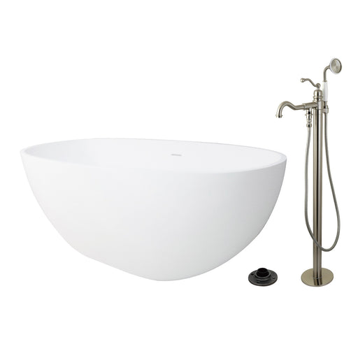 Original price $9,494.95Original price $9,494.95 - Original price $9,494.95Original price $9,494.95Current price $7,121.21$7,121.21 - $7,121.21Current price $7,121.21| /Kingston Tulare KRTRS6531138AL - Arcticstone 65-Inch Solid Surface Oval Double Ended Freestanding Tub with Faucet Combo and Drain, Brushed Nickel