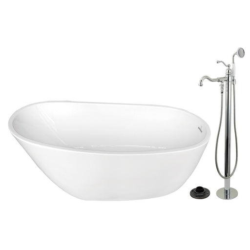Original price $3,364.95Original price $3,364.95 - Original price $3,364.95Original price $3,364.95Current price $2,523.71$2,523.71 - $2,523.71Current price $2,523.71| /Kingston Tulare KTDE5632131AL - Aqua Eden 56-Inch Acrylic Oval Double Ended Freestanding Tub with Faucet Combo and Drain, Glossy White/Polished Chrome
