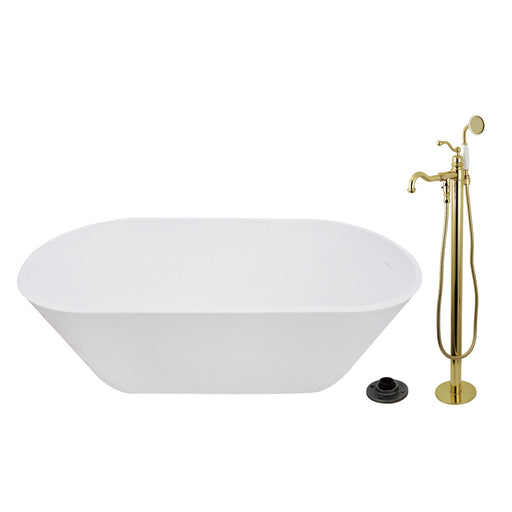 Kingston BrassKingston Tulare KRTRS6731132AL - Arcticstone 67-Inch Solid Surface Oval Double Ended Freestanding Tub with Faucet Combo and Drain, Polished Brass ...