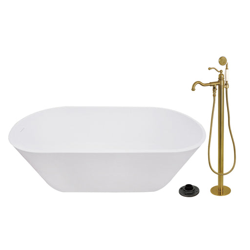 Kingston BrassKingston Tulare KRTRS6731137AL - Arcticstone 67-Inch Solid Surface Oval Double Ended Freestanding Tub with Faucet Combo and Drain, Brushed Brass ...