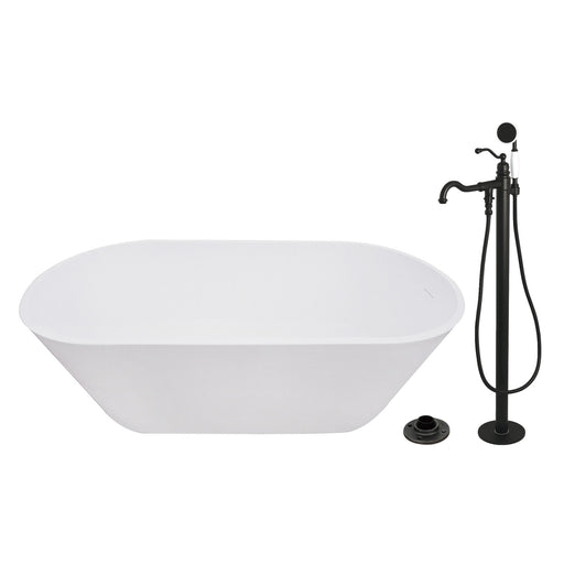 Kingston BrassKingston Tulare KRTRS6731130AL - Arcticstone 67-Inch Solid Surface Oval Double Ended Freestanding Tub with Faucet Combo and Drain, Matte Black T...