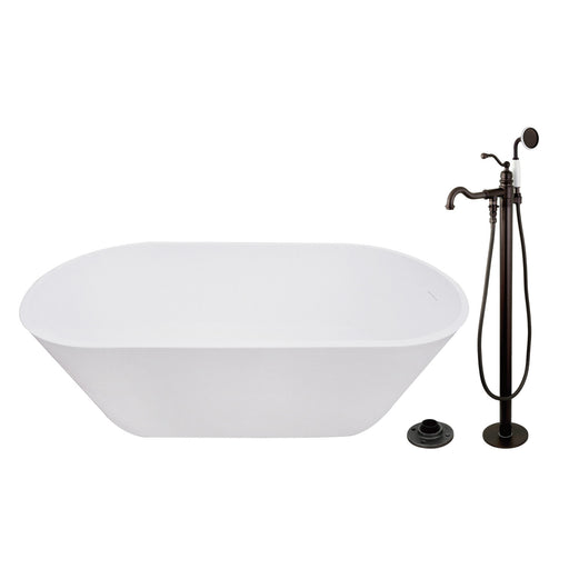Kingston BrassKingston Tulare KRTRS6731135AL - Arcticstone 67-Inch Solid Surface Oval Double Ended Freestanding Tub with Faucet Combo and Drain, Oil Rubbed Bron...