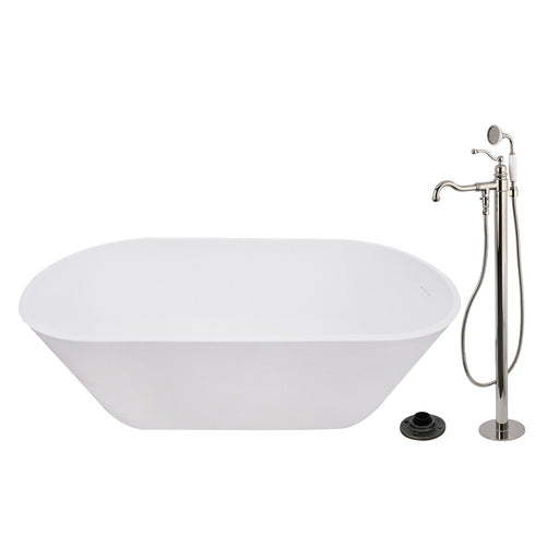 Kingston BrassKingston Tulare KRTRS6731136AL - Arcticstone 67-Inch Solid Surface Oval Double Ended Freestanding Tub with Faucet Combo and Drain, Polished Nickel...