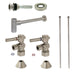 This contemporary themed vessel sink kit consists of all the necessary parts to set up a sound waste water drainage system. The parts included are single handle compression angle stops, 30" bullnose lavatory supply lines, 1/2" IPS bell flanges, a 13-7/8" bottle trap, 22-gauge push-button drain without overflow and a mounting ring. The parts are all made from brushed nickel for that bright radiance and also layered for stain and tarnishing resistance.
