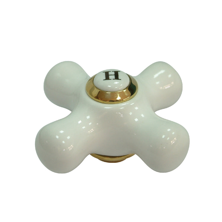 Vintage CCCX2H Porcelain Cross Handle (Hot Side), Polished Brass