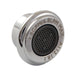 Installed at the ends of household faucets, aerators are designed with mesh screens to reduce splashing and dripping in sinks. A mixture of water and air is delivered while also helping to conserve water. This aerator's thread size: US female 55/64"-27 UNS connection. The water flow rate is 1.8 gallons per minute (GPM).