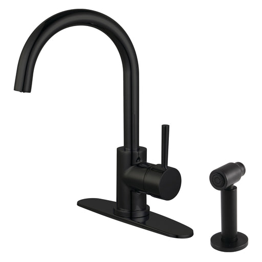 Kingston BrassConcord LS8570DLBS Single-Handle 2-Hole Deck Mount Kitchen Faucet with Brass Side Sprayer, Matte Black This faucet boasts bold, sleek design wit...