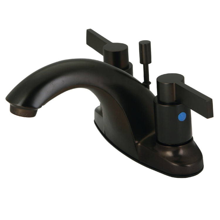 The chic fashion of this faucet is distinguished by its expressive artistry and flat, ergonomic levers. Centerset bathroom faucets are ideal for smaller bathrooms and feature an easy 3-hole installation. The NuvoFusion 4-inch centerset bathroom faucet with retail pop-up and its featured sturdy brass construction and premium oil rubbed bronze finish are guaranteed to glamorize your home's modern ensemble for years to come. Revive the obsolete with the illustrious prestige of this fixture. A matching finish drain is also included.