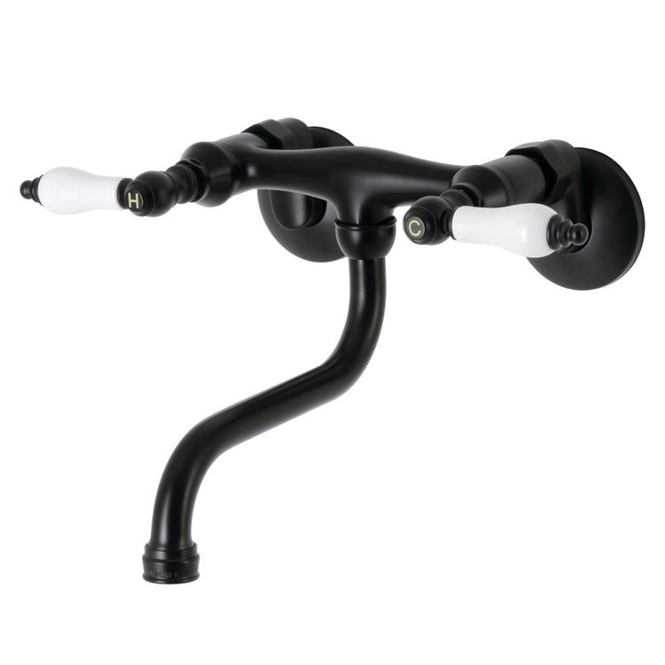 Kingston Heirloom KS516MB - Kingston Double-Handle 2-Hole Wall Mount Bathroom Faucet, Matte Black