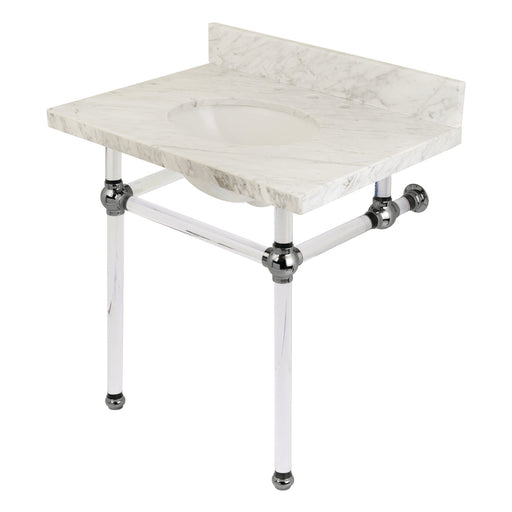 Kingston BrassKingston Tulare KVPB3030MA1 - Templeton 30-Inch Carrara Marble Vanity Top with Acrylic Legs (8-Inch, 3-Hole), Carrara Marble White/Polished Chrome...