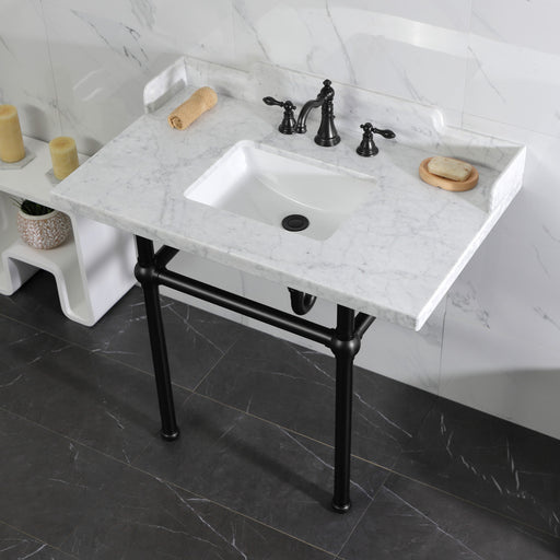 Kingston BrassKingston Heirloom LMS3630MBSQ0 - Pemberton 36-Inch Carrara Marble Console Sink with Brass Legs (8-Inch, 3-Hole), Carrara Marble White/Matte Black ...