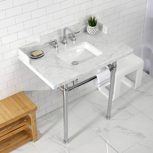Kingston BrassKingston Tulare LMS3622M8SQ6ST - Wesselman 36-Inch Carrara Marble Console Sink with Stainless Steel Legs (8-Inch, 3-Hole), Carrara Marble White/Po...