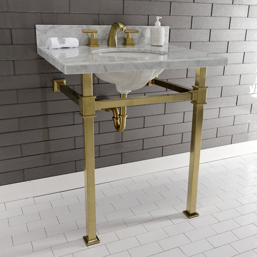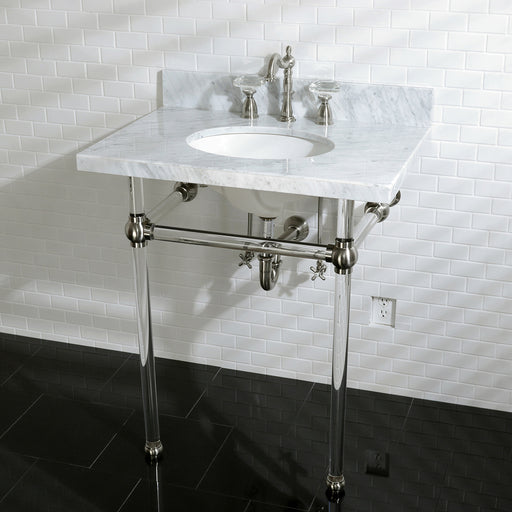 Kingston BrassKingston Sona KVPB30MOQ7 - Monarch 30-Inch Carrara Marble Console Sink with Stainless Steel Legs (8-Inch, 3-Hole), Carrara Marble White/Brushed Br...