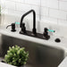 This faucet tastefully interweaves top-notch ergonomic design and the sheen of contemporary simplicity with its black silicone rubber coated handles and cylindrical facets. Easily adaptable to any style, centerset faucets are admired for their single unit and ease of installation. The oil rubbed bronze finish will also provide a long lasting and warm touch to your kitchen ensemble. A sturdy brass construction and swivel abilities make for a reliant and long lasting fixture. Matching accessories are available for use.