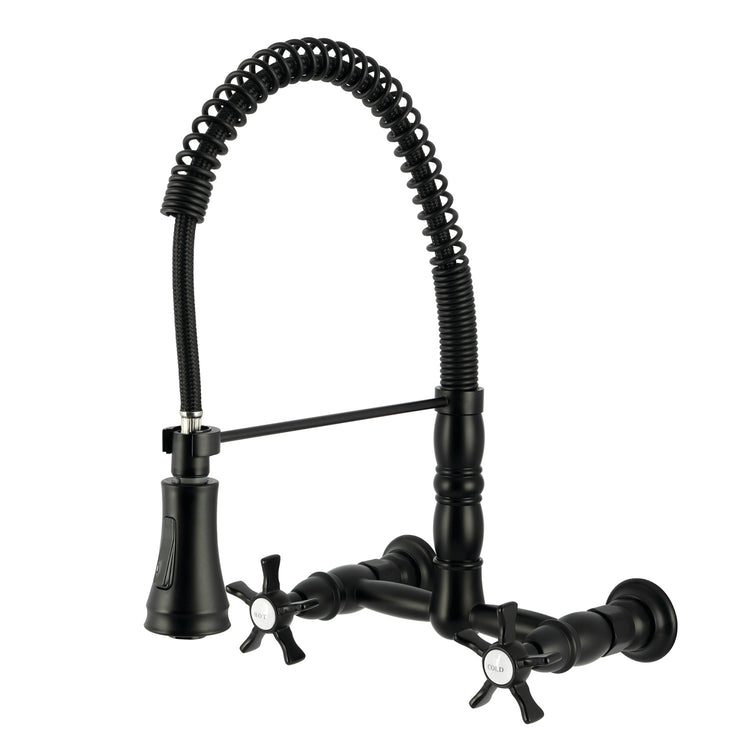 Kingston Tulare GS1240NX - Hamilton Double-Handle 2-Hole Wall-Mount Pre-Rinse Bridge Kitchen Faucet, Matte Black