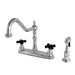 Kingston Heirloom KB1751PKXBS - Duchess Two-Handle 4-Hole 8" Centerset Kitchen Faucet with Brass Sprayer, Polished Chrome