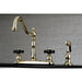Kingston Heirloom KB1752PKXBS - Duchess Two-Handle 4-Hole 8" Centerset Kitchen Faucet with Brass Sprayer, Polished Brass