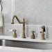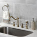 English historical splendor finds itself standing with stunning dignity in the prevalence of the refined acrylic lever handles of this faucet. Able to fit a variety of sink set-ups, widespread kitchen faucets can be utilized in several multi-hole configurations. These are ideal for larger kitchens, as they are more spread apart, and with the included side-sprayer feature a 4-hole installation. The antique brass finish will also add a glistening elegance to your kitchen ensemble. Allow the brass construction to provide a sturdy and reliant fixture.