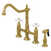 Kingston Heirloom KS1277PXBS - Heritage Two-Handle 4-Hole Deck Mount Bridge Kitchen Faucet with Brass Sprayer, Brushed Brass