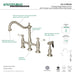 Kingston Heirloom KS1278PLBS - Heritage Two-Handle 4-Hole Deck Mount Bridge Kitchen Faucet with Brass Sprayer, Brushed Nickel