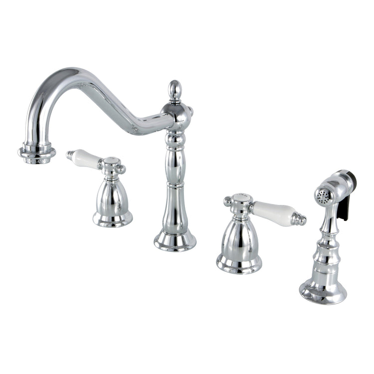 Kingston Heirloom KS1791BPLBS - Bel-Air Double-Handle 4-Hole Widespread Kitchen Faucet with Brass Sprayer, Polished Chrome