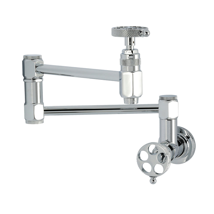 Kingston Sona KS5101RKX - Webb Two-Handle 1-Hole Wall Mount Pot Filler Faucet with Knurled Handle, Polished Chrome