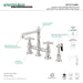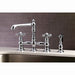 Kingston Tulare KS7271AXBS - English Country Two-Handle 4-Hole Deck Mount Bridge Kitchen Faucet with Brass Sprayer, Polished Chrome