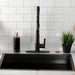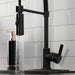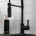 Transcend your home into a futuristic utopia with this faucet's brilliant craftsmanship and modern, curved spout with ergonomic levers. Designed for optimum versatility and functionality, the multiple spray settings and extendable spout of this pre-rinse faucet make for an enjoyable cleaning experience. Additionally, the rotating swivel spout leaves no area of the sink untouched as the industrial look of the exposed spring provides residential function. The naples bronze finish will also provide a long lasting and warm touch to your kitchen ensemble. Matching accessories are available for use.