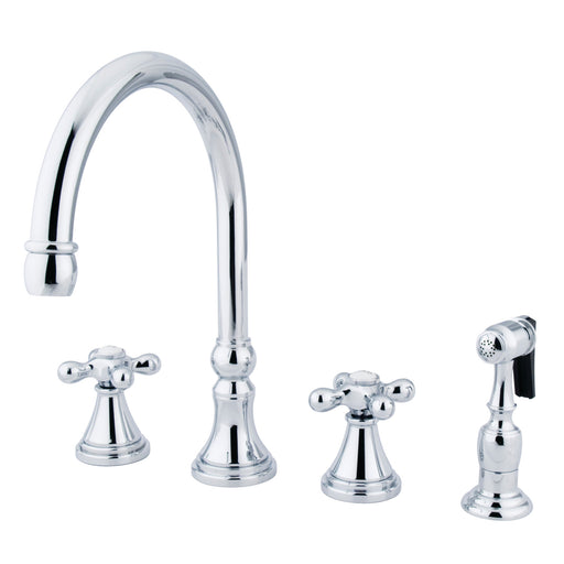Kingston BrassKingston Tulare KS2791AXBS - Governor Double-Handle 4-Hole Widespread Kitchen Faucet with Brass Sprayer, Polished Chrome Stylized for excellence...