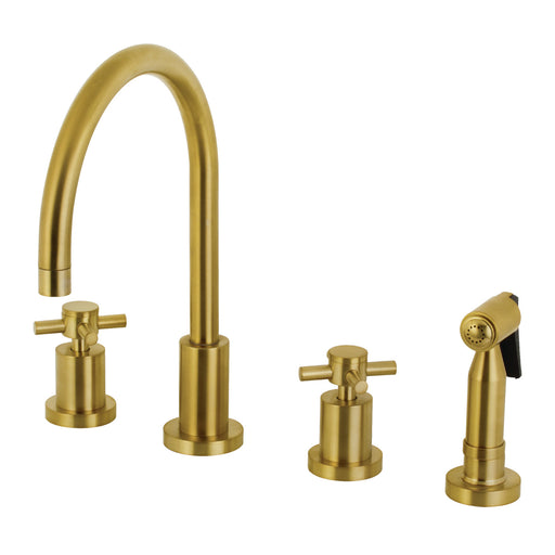 Kingston BrassKingston Sona KS8727DXBS - Concord Double-Handle 4-Hole Widespread Kitchen Faucet with Brass Sprayer, Brushed Brass This faucet boasts bold, sle...