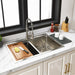 The Uptowne collection brings forth bold design and smooth lines, enhancing your contemporarily styled home. The Uptowne 33" Stainless Steel Double Bowl Dual Mount Kitchen Sink is constructed from high quality 18-10, 304 grade rust-resistant stainless steel. The 0 radius corners, and 9-5/16 deep bowls will give you ample space to tackle any kitchen chore. The brushed finish is also resistant to scratches, and with the sink's sound dampening technology, sound and vibrations are reduced. This comprehensive sink combo includes a strainer, strainer cover, sink grid, steel roll-up drying rack with silicone coating, silicone drying mat, and cutting board, providing everything you need for a functional and stylish setup.