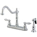 Kingston Heirloom KB1751ALBS - Heritage Two-Handle 4-Hole 8" Centerset Kitchen Faucet with Brass Sprayer, Polished Chrome