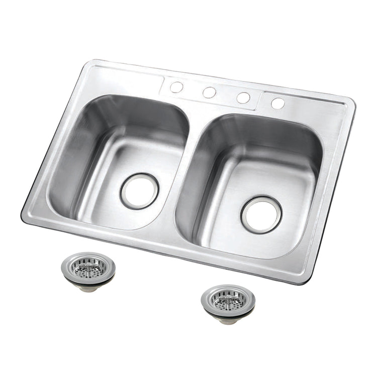 Kingston Tulare KGKTD332261 - Studio 33-Inch Stainless Steel Self-Rimming Double Bowl Drop-In Kitchen Sink (4-Hole) with Strainer, Stainless Steel/Polished Chrome