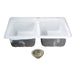 Kingston Heirloom KGT33229D28 - Petra Galley 33-Inch Cast Iron Self-Rimming Double Bowl Drop-In Kitchen Sink (2-Hole) with Basket Strainers x 2, White/Brushed Nickel