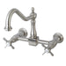 Kingston Heirloom KS1248BEX - Essex Two-Handle 2-Hole Wall Mount Bridge Kitchen Faucet, Brushed Nickel