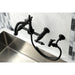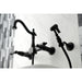Kingston Heirloom KS1260ALBS - Heritage Two-Handle 3-Hole Wall Mount Bridge Kitchen Faucet with Brass Sprayer, Matte Black